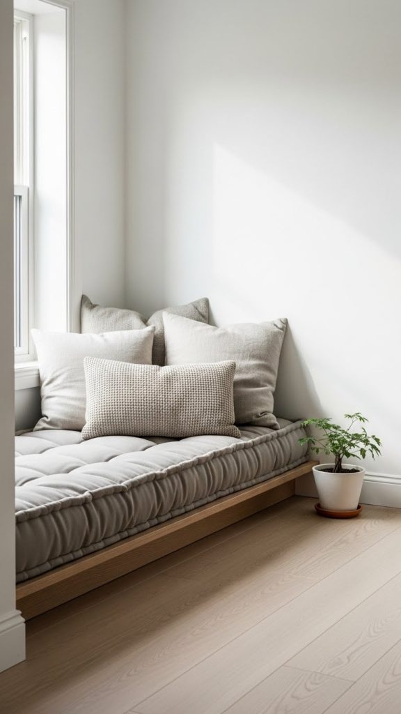 A minimalist cushion window seat is simple, functional, and stylish. It focuses on comfort without elaborate construction or heavy furniture.