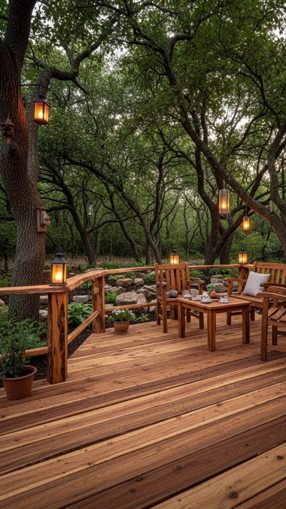 This deck is used for quiet relaxation reading and enjoying nature. It suits homes with gardens trees or scenic views. Maintenance includes periodic sealing and monitoring for natural wear. Rustic decks age gracefully and develop character over time offering a peaceful and grounded outdoor living space.