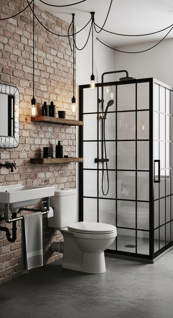 Add Edison bulb lighting, open plumbing, and metal mirrors for authenticity. This look feels strong, masculine, and effortlessly cool, yet can be softened with warm towels and plants for balance.