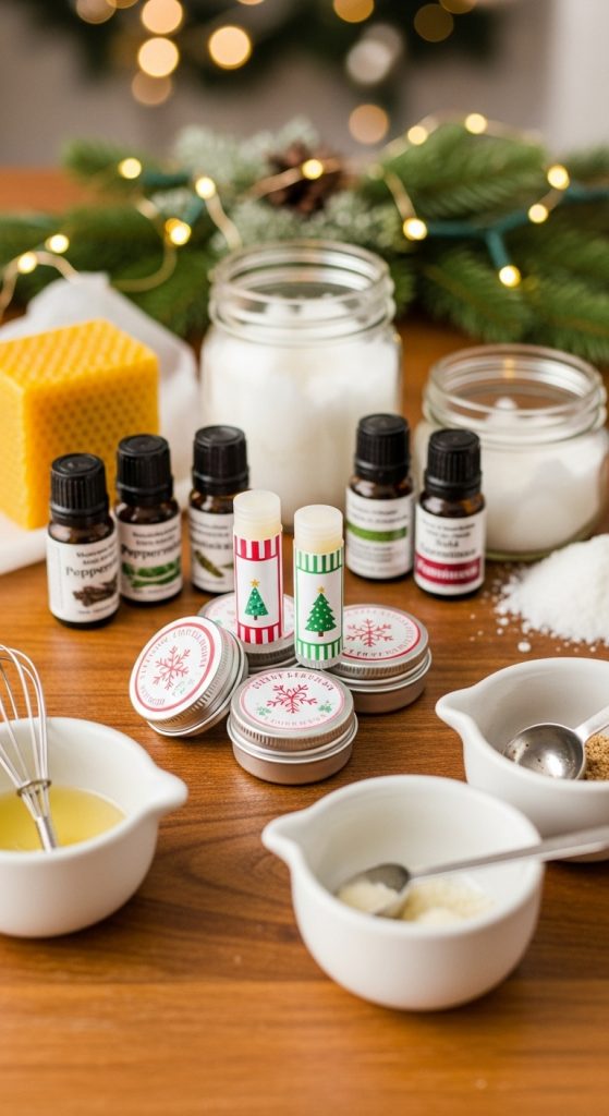 Materials Needed: Beeswax, coconut oil, shea butter, essential oils, small containers, double boiler, labels or decorations.
