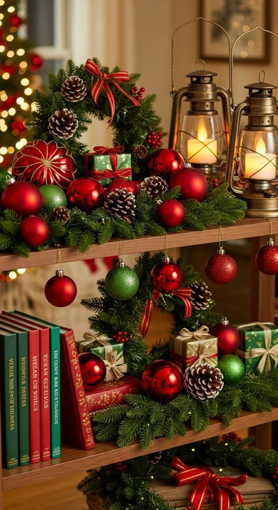 1. Classic Red and Green Shelf Styling