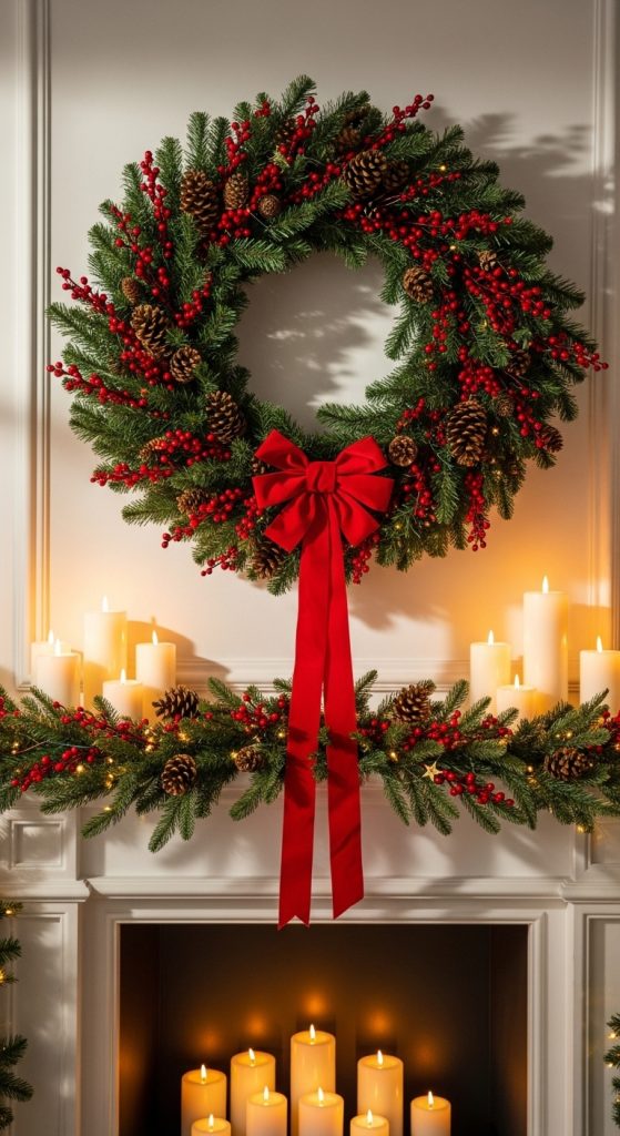 An oversized Christmas wreath makes a stunning focal point on any wall. Choose a traditional green wreath adorned with red ribbons, pinecones, and berries for a timeless look, or go for a minimalist all-white or metallic wreath for a modern touch.