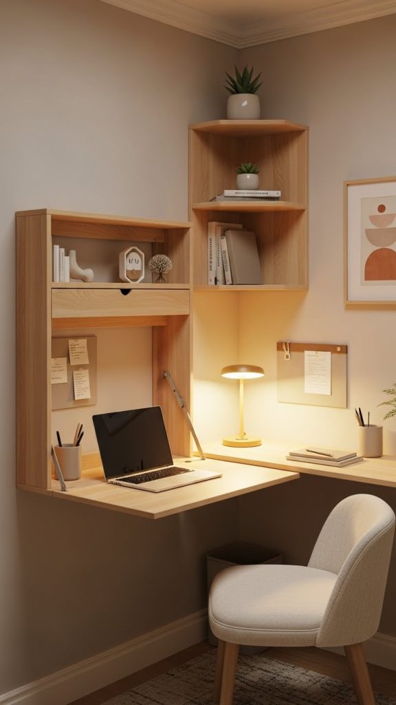 Materials needed depend on your chosen style. Wall mounted desks require brackets, screws, and a drill, while freestanding desks may require only assembly tools. When preparing, measure the available space carefully and leave enough clearance for movement. Keep desk surfaces clear by using organizers or vertical storage systems. The right desk improves workflow and maintains a cozy environment without overcrowding the room. By selecting a compact yet functional design, you create a workspace that supports productivity while preserving the warmth and simplicity of your home. This approach allows even the smallest corner to become an efficient and comfortable office.