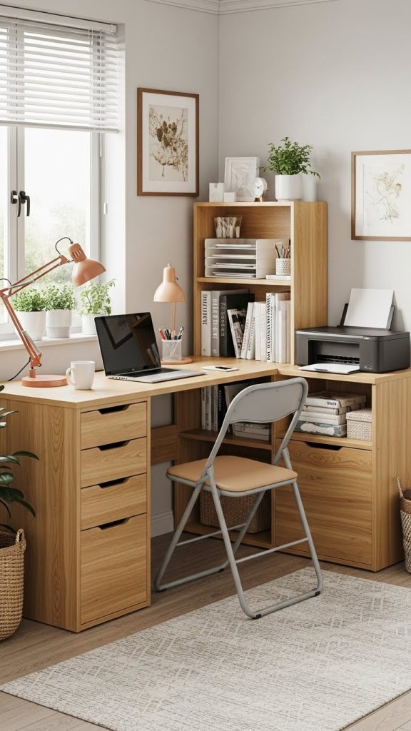 Materials to consider include wood, bamboo, metal frames, and durable laminates. When assembling multifunctional pieces, follow instructions carefully to ensure stability, especially if shelves or drawers will carry weight. A minimalist approach works best in small spaces, so avoid overly bulky or decorative items. Choose furniture with clean lines and neutral tones to maintain a cohesive look. By integrating multifunctional furniture, you create an office that feels spacious, organized, and efficient without sacrificing comfort and style. This reduces clutter and creates a calm environment ideal for focused work.