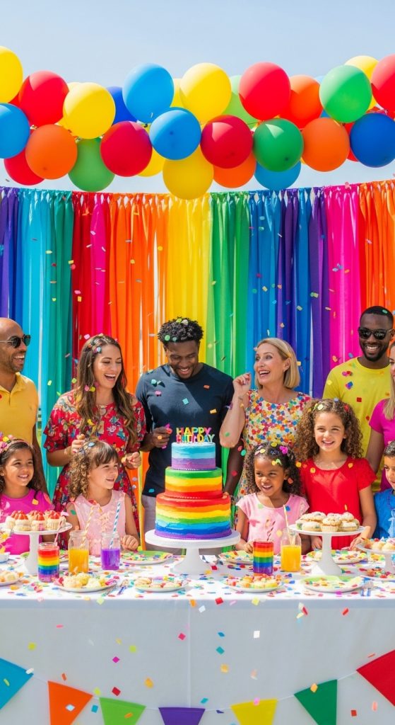 A rainbow birthday party is one of the most cheerful and visually cute ideas, filled with colors, positivity, and fun decor.