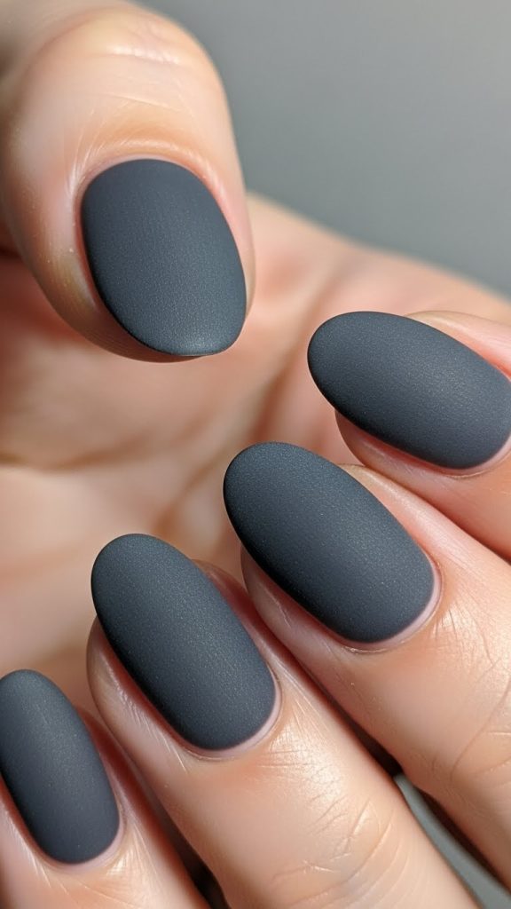 Charcoal grey nails offer a refined alternative to black, delivering depth with a softer tone. After preparing the nails with shaping and buffing, wipe them with a nail cleanser. Choose a deep charcoal grey polish with a creamy or metallic texture depending on your preference. Use a base coat to ensure smooth application. Apply the first coat of grey polish, making even strokes. Add a second coat for full opacity. For a professional finish, cap the free edge of the nail to avoid premature chipping. Top the design with a glossy or satin top coat. Charcoal grey pairs beautifully with both cool and warm toned outfits, making it a versatile option for work and casual settings. It conveys elegance while remaining understated, making it suitable for those who prefer dark colors without the intensity of pure black.