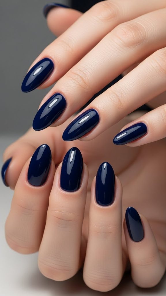 Midnight blue nails reflect elegance with a subtle twist. Preparation includes filing the nails into a balanced shape such as oval or almond, then cleansing the nail surface. For this design, select a deep navy polish with either a glossy or semi gloss finish. A ridge filling base coat helps avoid visible texture beneath dark colors. Apply a thin layer of base coat. Then apply two layers of midnight blue polish, ensuring clean strokes from cuticle to tip. If using gel, cure each coat in the lamp. You can choose a glossy top coat for a classic finish or a matte top coat to create a velvety effect. Midnight blue pairs well with cool toned accessories like silver or platinum jewelry. This nail color transitions smoothly from day to night, making it fitting for office environments as well as evening gatherings. The shade is bold yet refined, offering an alternative to traditional black while still maintaining a sense of sophistication.
