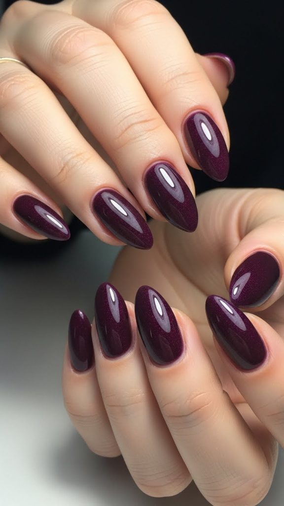 Plum purple nails deliver richness and dimension while offering a softer approach to dark tones. Start by shaping the nails and cleaning them with a nail wipe. Choose a deep plum shade with a cream or shimmer finish. Apply a smooth base coat and let it dry fully. Apply two coats of plum polish for even coverage. If you prefer a translucent finish, a single coat can create a softer look. For longevity, use a durable top coat with either a high shine or satin finish. Plum nails complement autumn and winter outfits but can also suit year round styles. They look refined enough for formal settings but also fashionable for casual wear. The deep purple adds sophistication without the starkness of pure black, making it an excellent alternative for those who want elegance with a touch of color.