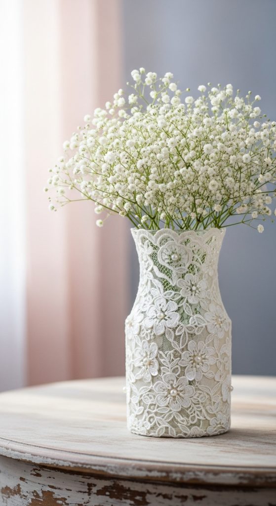 7. Lace Fabric Wrapped Vase for a Delicate Touch