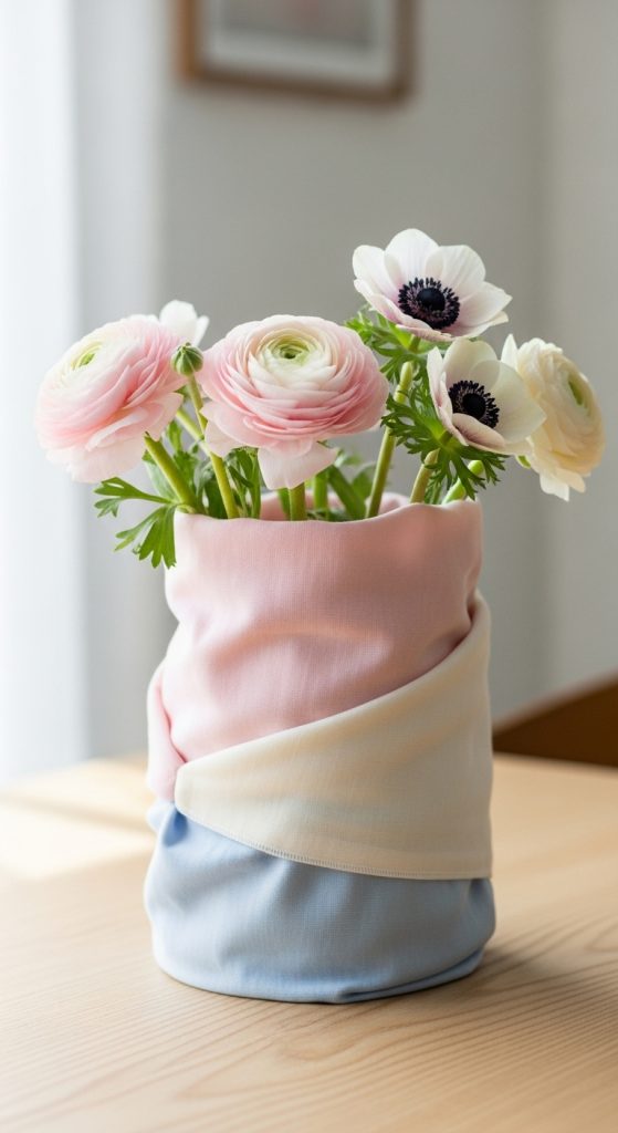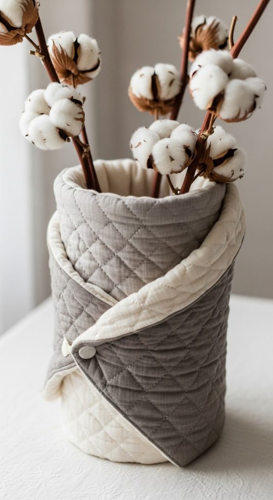10. Quilted Fabric Wrapped Vase for Soft Texture