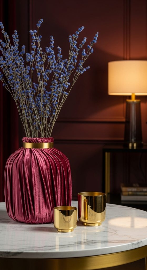 6. Velvet Wrapped Vase for a Luxurious Finish