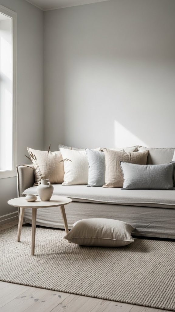 Linen cushion covers are a staple in minimal interior design because they bring softness and warmth without heavy patterns or bold colors. Making your own cushion covers allows you to control the color palette and size, ensuring a perfect fit for your space. Linen is known for its textural richness and breathable quality, making it ideal for creating a calm and inviting atmosphere. The sewing process is straightforward and suitable even for beginners. You can choose a simple envelope closure or add a concealed zipper for a sleek finish. Neutral colors ensure that the cushions blend with furniture while still adding subtle character. These cushions work beautifully on sofas, beds, benches, or reading nooks. The minimal design avoids clutter while still offering comfort and charm. Handmade covers also provide a custom look that feels intentional and cohesive. This project encourages sustainability because you can reuse inner cushions and replace covers seasonally without buying new ones. The clean lines, neutral tones, and natural fabric align perfectly with the principles of minimal decor, making this DIY a valuable addition to any home.