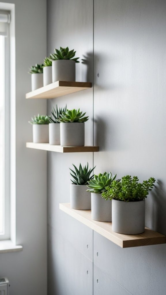 Concrete planters have become a popular feature in minimal interior design due to their smooth texture, muted color, and straightforward shape. This DIY project allows you to create small to medium sized planters that work for succulents, herbs, or decorative plants. Concrete naturally produces a modern industrial look, but when finished with fine sanding, it becomes soft and sophisticated. The neutral gray color effortlessly complements minimal interiors. Creating these planters requires mixing concrete to the correct consistency, pouring it into molds, and forming an inner cavity for soil by inserting a smaller container. Once dry, the planter can be refined with light sanding to achieve a clean surface. Concrete planters pair beautifully with green plants, which add life and freshness to a minimal home. The contrast between the natural plant and the cool concrete enhances visual balance. These planters work well on window sills, floating shelves, or as centerpieces. Their durability and timeless appearance ensure they remain relevant even as decor styles evolve. This project is simple, affordable, and ideal for anyone seeking to incorporate natural elements into minimalist design.