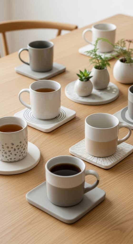 Clay coasters offer both function and beauty, protecting your table surfaces while adding a handmade touch. To prepare, gather air dry clay, a rolling pin, parchment paper, a knife or clay cutter, sandpaper, and optional acrylic paints or sealants. Begin by softening the clay and rolling it between sheets of parchment paper until it reaches a uniform thickness. Decide on your coaster shape, whether circular, square, or organic forms. Use your cutter or knife to shape each piece. Once shaped, place the clay pieces on a flat surface to dry completely, which may take up to twenty four hours depending on thickness. After drying, gently sand the edges to achieve smoothness. You can leave the coasters plain for a minimalist aesthetic or paint patterns such as stripes, speckles, or color blocks. Adding a sealant helps protect them from moisture and stains. Clay coasters are highly customizable and can be crafted in different sizes for mugs, cups, or small plant pots. They make excellent table accents and can be styled in stacks or arranged individually. Their handcrafted texture adds a soft and artistic presence to any tabletop.