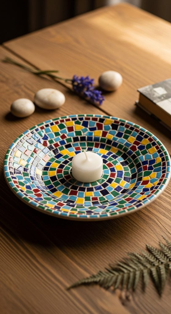 8. Decorative Mosaic Candle Plates