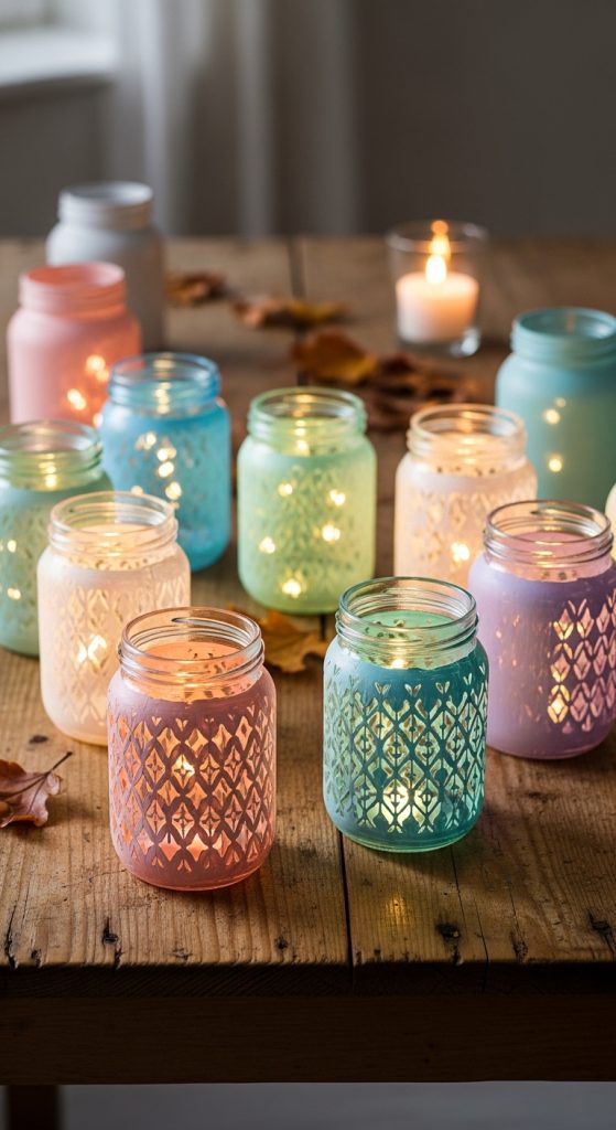 9. Painted Glass Jars as Table Lanterns