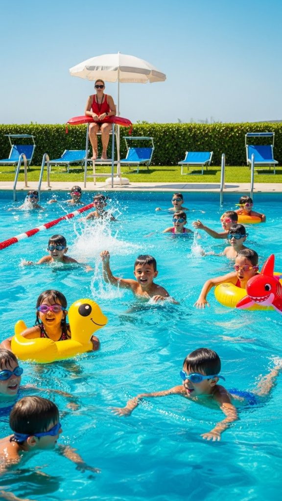 Swimming is a full-body exercise that promotes cardiovascular fitness, muscular strength, and coordination. It is also an essential life skill and provides children with water safety knowledge. Swimming can be adapted to various skill levels, from basic floating to advanced strokes, making it suitable for a wide age range.
