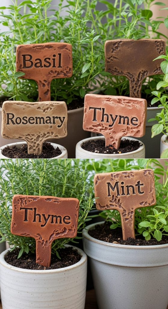 5. Rustic Clay Plant Markers