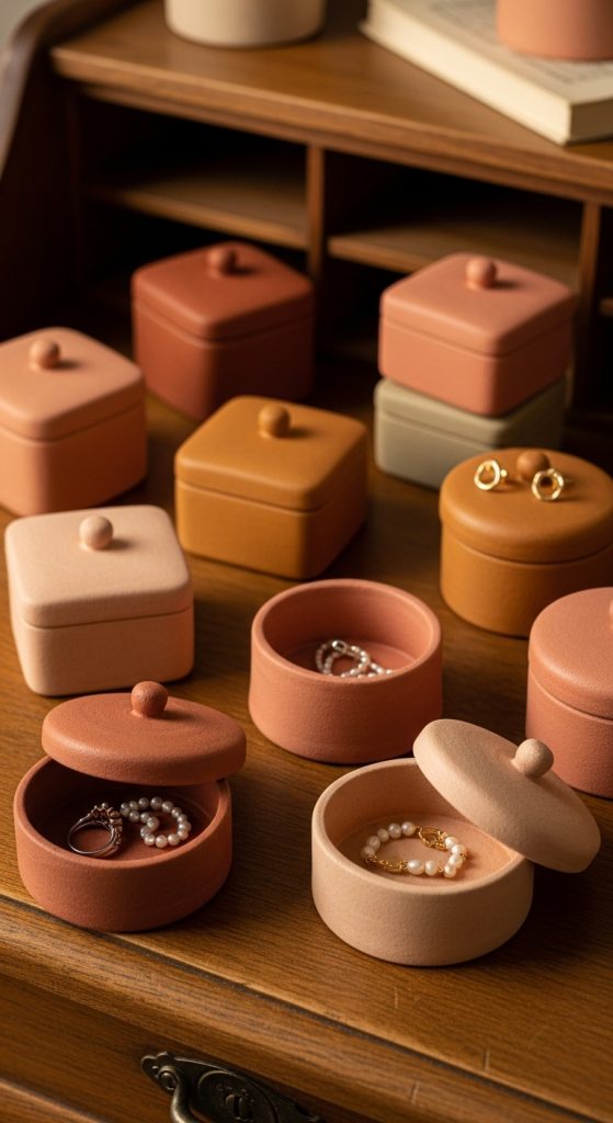 8. Clay Trinket Boxes with Warm Tones
