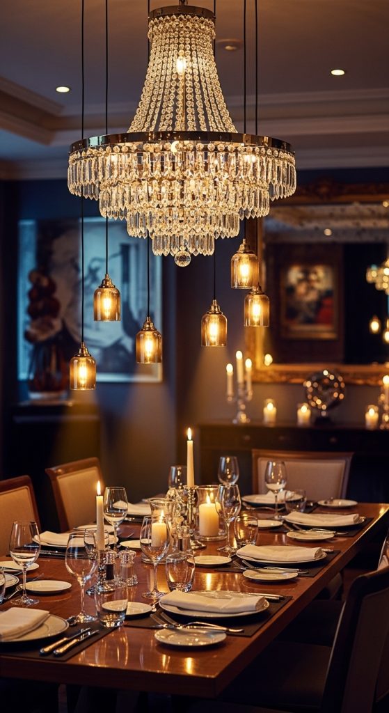 Lighting is one of the most powerful elements in dining area design. A statement chandelier can act as a centerpiece, while pendant lights provide a modern flair. Dimmer switches allow the lighting to be adjusted depending on the mood, whether it is a casual family dinner or a romantic evening.
