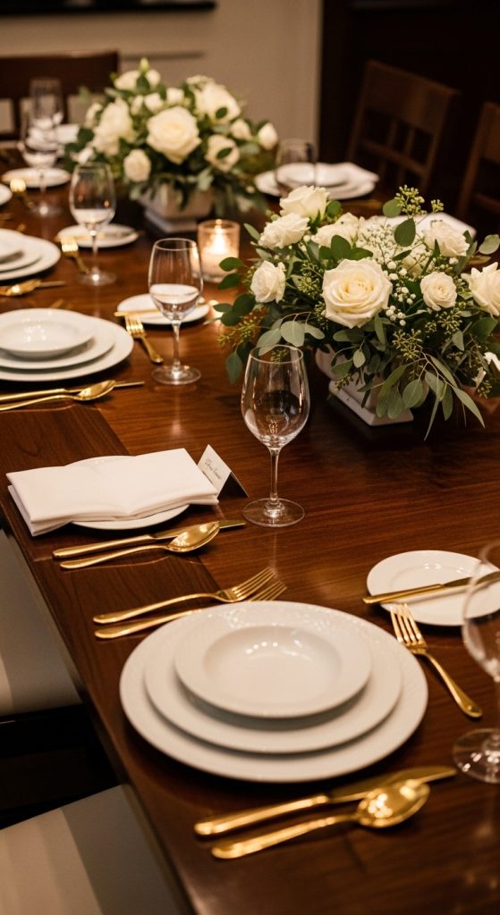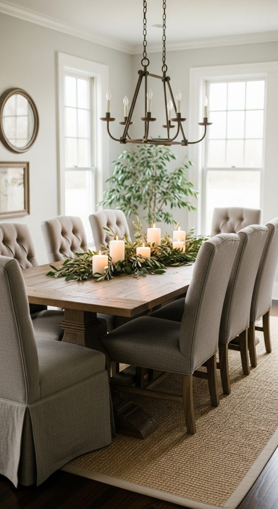 A centerpiece such as a vase of flowers, a bowl of fruit, or a collection of candles ties the setting together. Seasonal touches, such as pinecones in winter or fresh greenery in spring, keep the dining area fresh and dynamic.