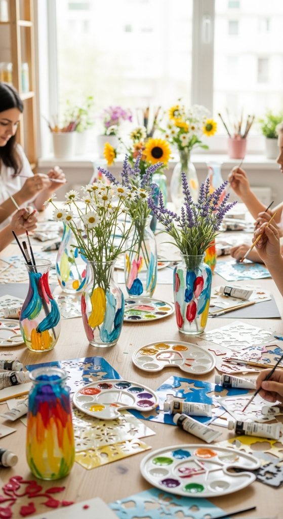 Childrenโs paintbrushes, painterโs tape, or stencils can create patterns or geometric designs. These vases can hold fresh or artificial flowers, candles, or seasonal decor elements.