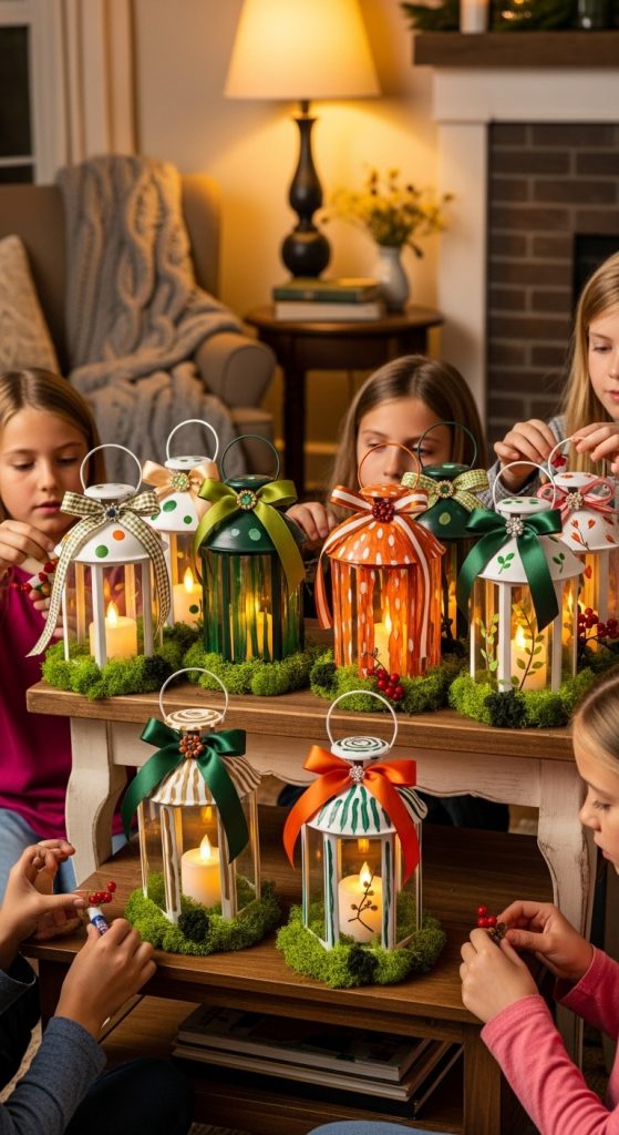 Lanterns can be displayed on mantels, tables, or as hanging accents. This project allows for creativity and personalization while transforming simple lanterns into charming focal points.