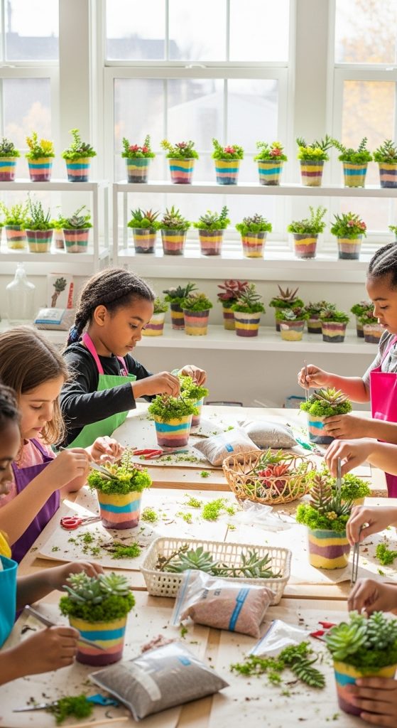 Small containers or pots from Dollar Tree can be filled with faux succulents or small plants to create decorative planters. Paint, moss, pebbles, or sand can be added for visual interest.