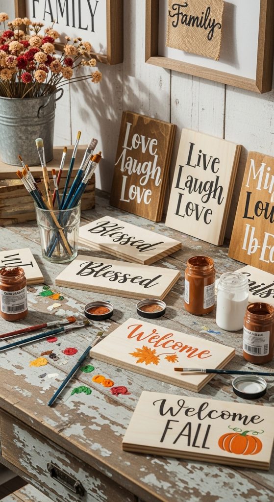Layering paint colors or distressing the wood can create farmhouse or rustic styles. Wooden signs are versatile and can be displayed in entryways, living rooms, kitchens, or bedrooms.