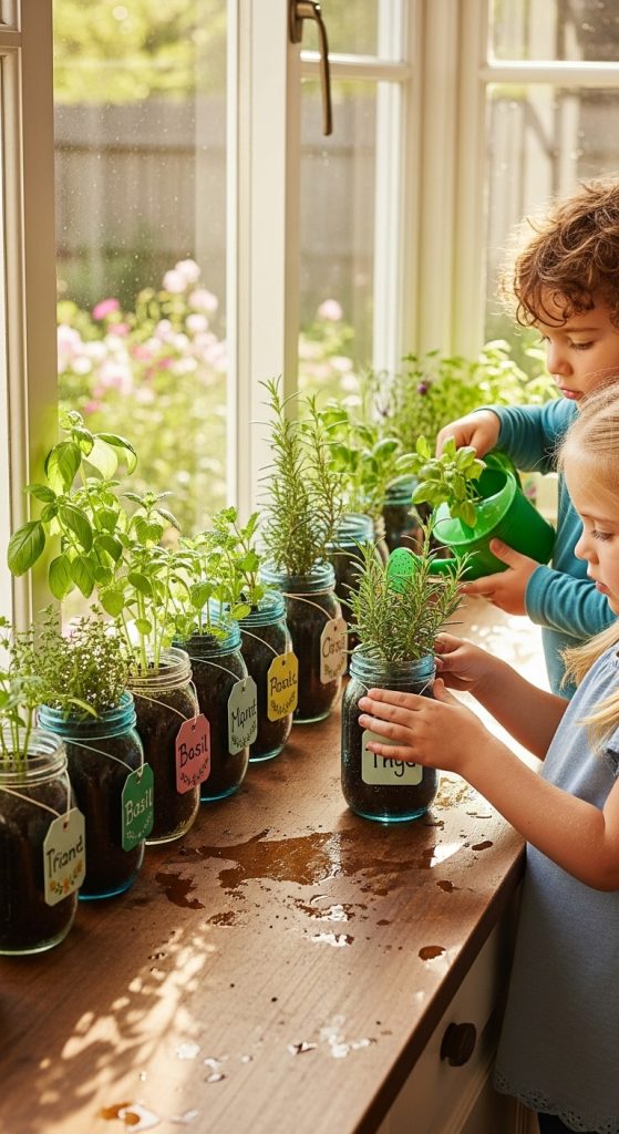 This DIY project combines functionality with decor. Herbs can be placed on kitchen windowsills, adding greenery and fresh scents. Mason jar herb gardens are practical, decorative, and simple to assemble with Dollar Tree materials.