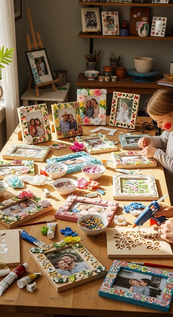 Frames can also be decorated with embellishments such as faux flowers, shells, or beads for added texture. Picture frame collages are an effective way to display memories while adding visual interest to walls.