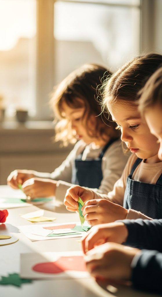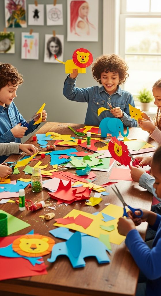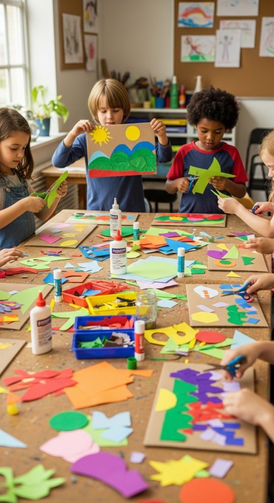 Paper collage allows kids to explore creativity freely by layering shapes, colors, and textures.