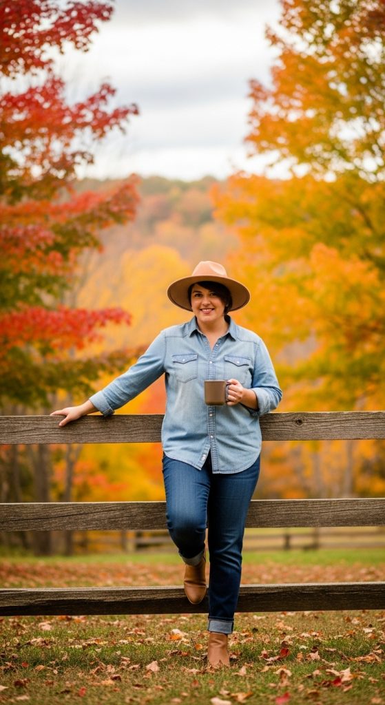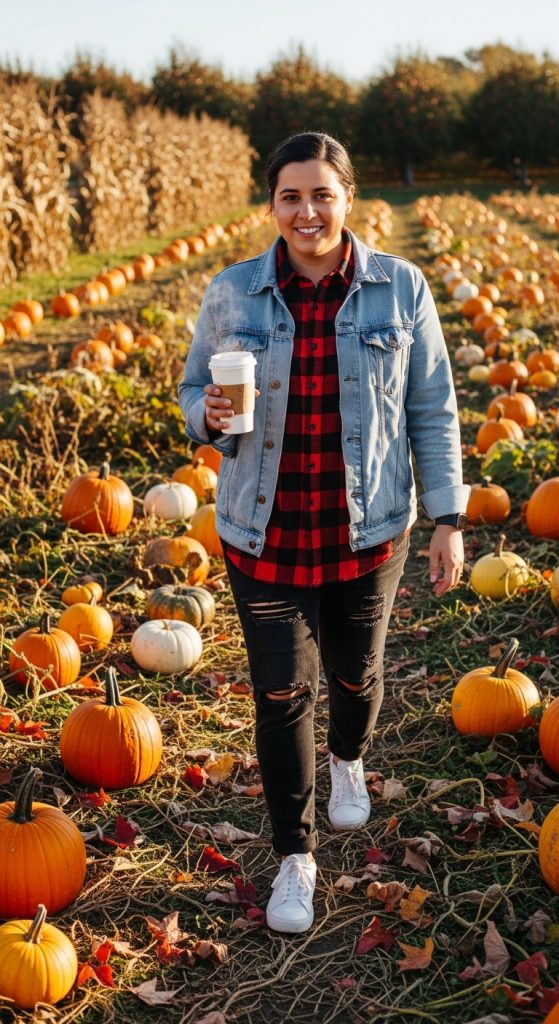 Finish with combat boots or casual sneakers. This outfit works especially well for outdoor activities like pumpkin patch visits or weekend strolls. It combines practicality with effortless style.