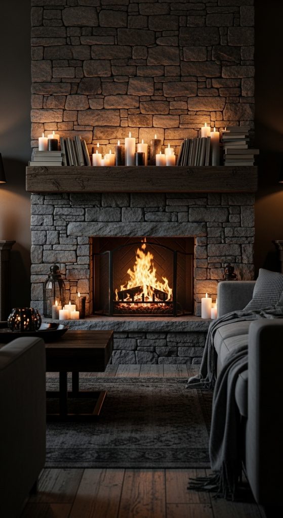 Decorating the mantel with candles, vintage books, or earthy ceramics ties it into the overall design. Even if you do not have a working fireplace, you can create a similar effect with a decorative mantlepiece or an electric version. The key is to capture that sense of warmth and gathering that a fire provides.