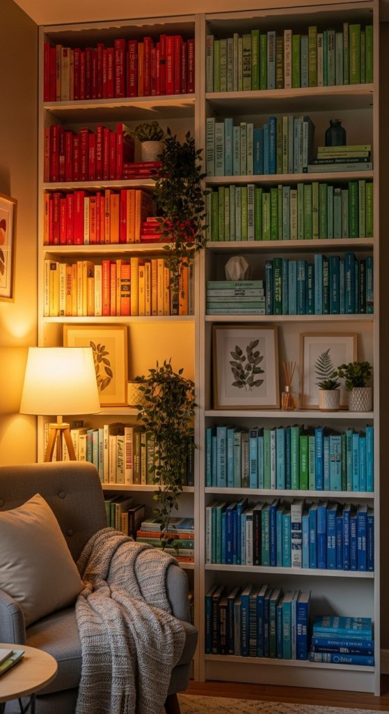Your books themselves can become part of your cozy aesthetic. Instead of hiding them away, display them proudly on a bookshelf. Organize them by color for a rainbow effect, or stack them horizontally with decorative accents placed on top.