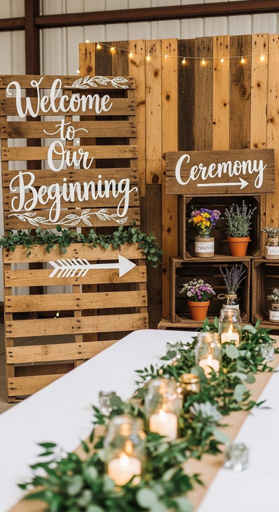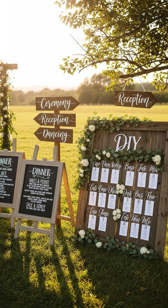 Wedding signage is a necessity, but it does not need to be costly. With reclaimed wood, chalkboards, or even cardboard painted to mimic wood, you can create personalized signs that guide guests and enhance your rustic theme.