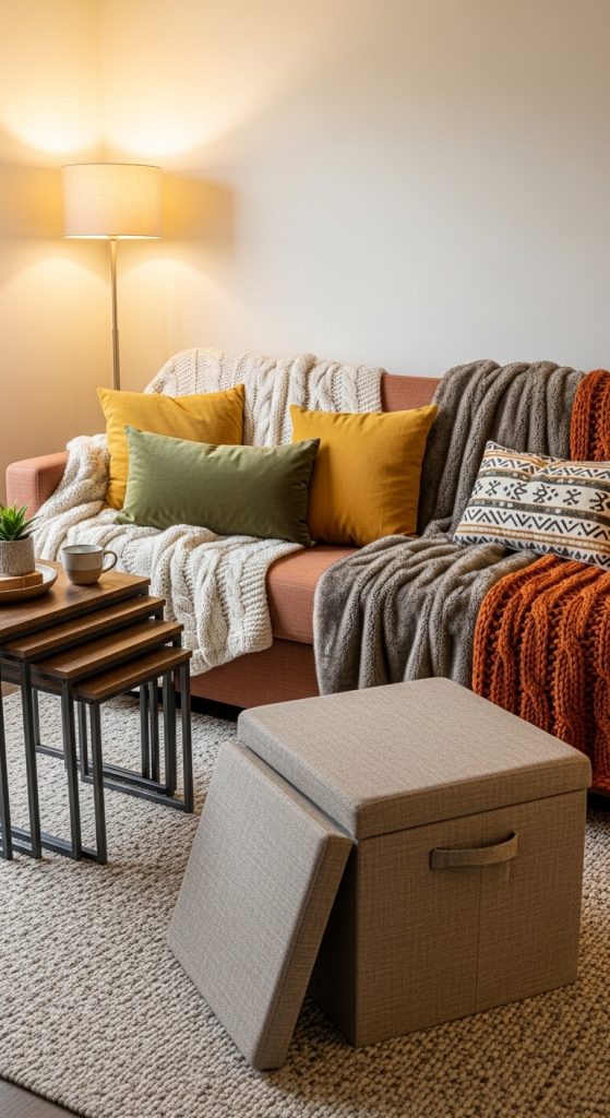 When styled with cozy elements like a soft throw or decorative tray, multifunctional furniture can seamlessly blend into the overall aesthetic while serving everyday needs.