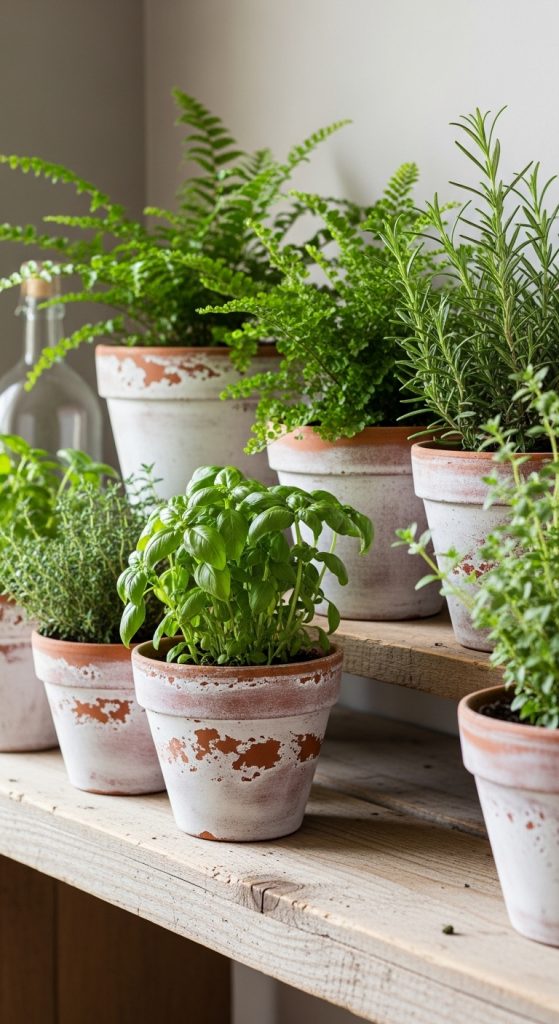 Whitewashed terracotta pots pair perfectly with green plants such as ferns, succulents, or herbs. They complement rustic, farmhouse, or coastal-style decor and add an airy feel to the space. These pots work well in clusters of different sizes for a natural, curated look.