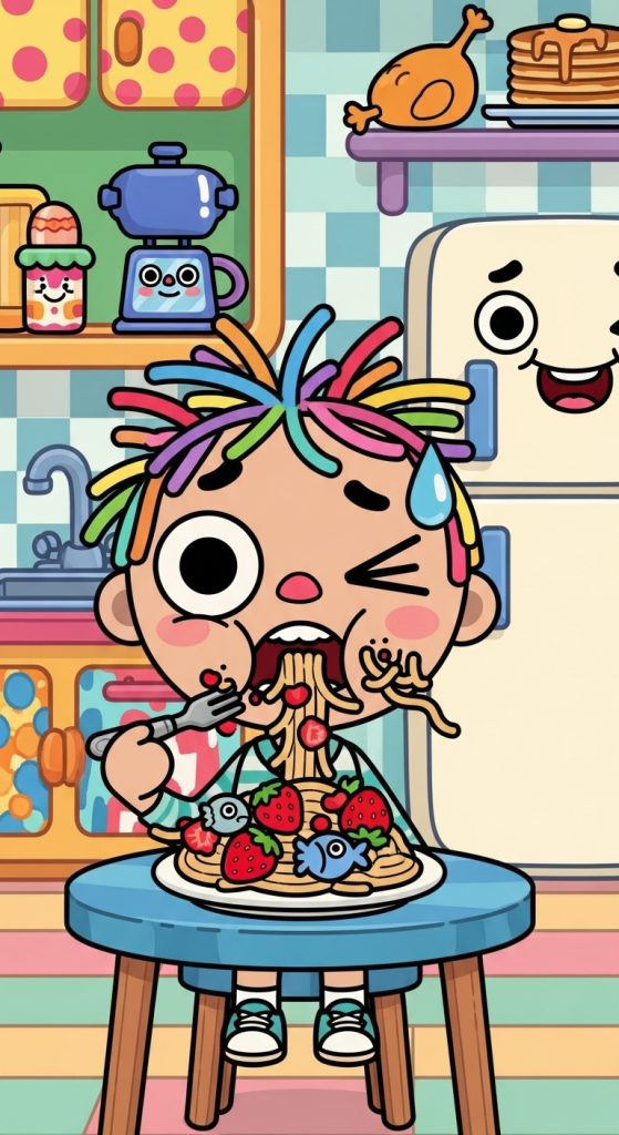 One of the most entertaining aspects of Toca Kitchen is the ability to mix unlikely ingredients. Players can blend fruits with fish, serve raw onions with ice cream, or cook pasta with strawberries. The reactions of the characters to these unusual meals are often hilarious.